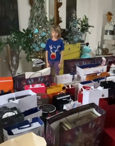 Продюсер выложила видео, где ее сын Александр Плющенко стоит в окружении нескольких десятков подарков.