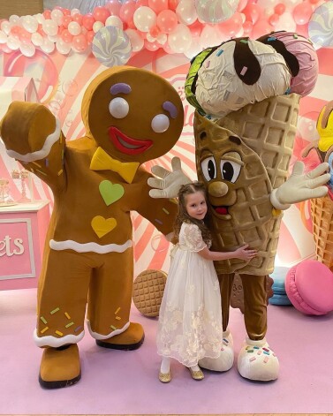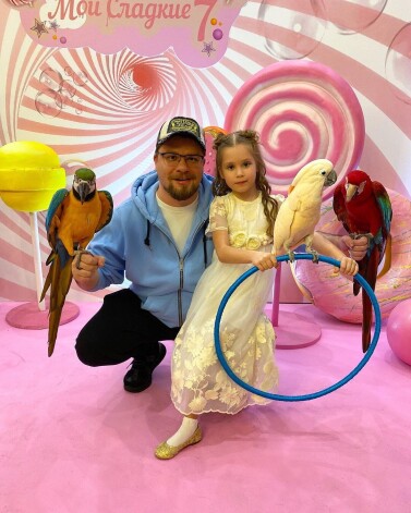 Ради 7-летия маленькой Насти они устроили большой праздник в одном из комплексов Москвы, куда пригласили аниматоров, друзей девочки и привезли настоящих птиц. Актриса Дарья Мельникова назвала это «сахарной вечеринкой», так как повсюду были сладости и украшения в виде леденцов, тортов и пончиков. Сама именинница активно позировала с попугаями, а также клоунами. И радостно разбрасывала конфетти во время игры.