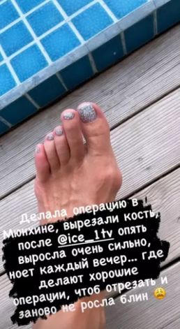 "Живу с болью каждый день", — отметила Ольга и добавила в следующей Stories: "Делала операцию в Мюнхене, вырезали кость, после опять выросла очень сильно, ноет каждый вечер... Где делают хорошие операции, чтобы отрезать и заново не росла?"