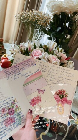 Дочь актрисы Анастасии Заворотнюк Анна в Instagram показала открытки, подписанные от руки от близких людей на свое 25-летие. На кадрах можно увидеть, что теплые слова ей посвятили брат Майкл и бабушка Валентина Борисовна. Также на кадре изображен огромный букет цветов, который подарили девушке, и много других приятных вещей. «Открытки от руки от любимых — самые ценные. Бесконечно люблю вас», - написала она.