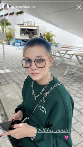 Несколько лет назад старшая дочь певицы Глюк’оZы Лидия радовала родителей милыми платьями и светлыми локонами, но к 13 годам девочка превратилась в настоящую бунтарку. На некоторых фото она выглядит едва ли не старше матери. Лидия носит короткую стрижку, красит волосы в розовый и с головой погружена в музыку. На отдыхе в США певица показала повзрослевших дочек. Лидия снова сменила имидж — и теперь она носит синий «ежик». На фото она позирует в ярком худи и металлических украшениях в одном местных кафе.