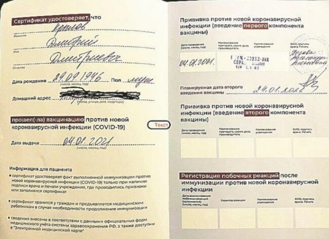 74-летний телеведущий Дмитрий Крылов в конце января отправится на вторую прививку — ее делают через 21 день после первой, так как вакцинация состоит из двух этапов. В праздничные выходные Крылов пришел домой из поликлиники и стал рассматривать сертификат о вакцинации: эту бумагу выдают москвичам в прививочных пунктах, в ней обозначено, где и когда сделана прививка. И обнаружив, что его привили вакциной «Гам-КОВИД-Вак», забил тревогу в соцсетях: «В названии нет слова «Спутник». У вас, кто уже укололся, такие же бумажки?» Друзья успокоили Дмитрия: «Спутник V» — это торговая марка вакцины «Гам-КОВИД-Вак».
