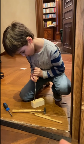 В процессе ремонта мужчинам потребовалась дощечка, которая лежала в подсобке. Чтобы добраться туда, юморист показал наследнику тайный подземный туннель. Судя по всему, мальчик был в восторге. Он бежал и прыгал по «казематам», а потом попросил пригнувшегося папу встать. Как ни странно, туннель оказался таким высоким, что Галкин смог подняться в полный рост.
