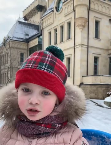 Пока у Гарри было занятие французским языком, его сестра вместе с папой отправилась на прогулку во дворе замка, расположенного в подмосковной деревне Грязь.