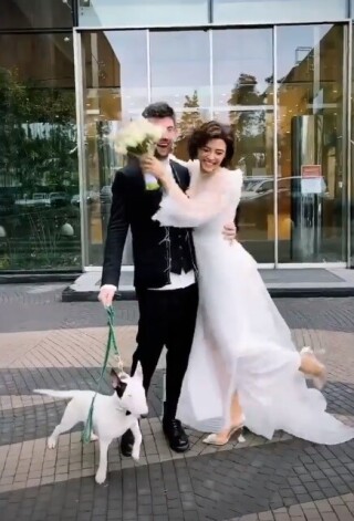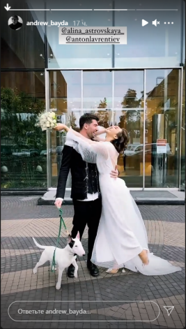 Также молодожены поделились с поклонниками красивыми свадебными фотографиями. Расписались влюбленные в популярном в этом свадебном сезоне Первом Московском областном дворце бракосочетания в Барвихе. На церемонию были приглашены только самые близкие. Важным гостем стал пес по имени Белый Стих — домашний питомец Антона и Алины.