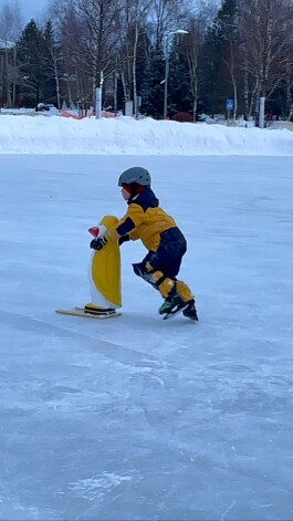 Альбина запечатлела, как Лука держится за пластиковых пингвинов, установленных на катке. Мальчик еще только учится стоять на коньках. Певица включила камеру телефона, чтобы записать его успехи на видео. Малыш сделал несколько больших шагов и выехал из угла катка в центр. Лука встал на правую ногу, но не удержал равновесия и упал на лед.