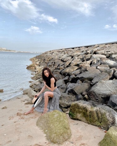 Девушка выбрала для отдыха Арабские Эмираты. 25-летняя Анна вместе с бойфрендом поселилась в Дубае и исследует его пляжи. В Instagram она поделилась красивым снимком, снятым на морском берегу. Девушка сидит на камне, подставив под лучи солнца длинные ноги. Для прогулки Анна выбрала длинную летящую юбку и черный топ, а волосы прикрыла широкополой шляпой.