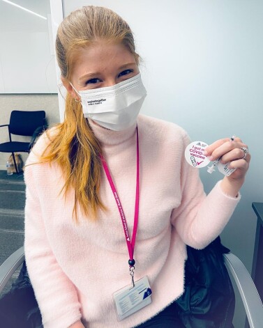 24-летняя Дженнифер Гейтс получила пока только первую дозу из двух необходимых. На фото девушка демонстрирует наклейку с надписью «Я получила свою прививку от COVID-19». По ее словам, другим также следует подумать о вакцинации. «Чем больше людей приобретут иммунитет, тем безопаснее будет для всех», — пояснила она.