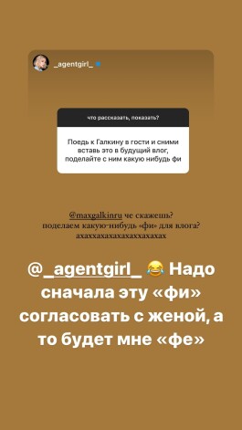 Буквально на днях артист даже записал вайн с юными блогерами из проекта Dream Team House, живущими в одном доме и снимающими про себя реалити. Все – ради дополнительных лайков и притока новой молодой аудитории. Тем не менее, Максим не стал сразу соглашаться с предложением Насти. «Поделаем какое-нибудь «фи» для влога?» — спросила Ивлеева Галкина. «Надо сначала эту «фи» согласовать с женой, а то будет мне «фе», — ответил муж Примадонны блондинке.