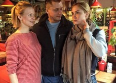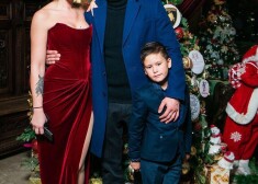 Агата Муцениеце и Павел Прилучный с сыном Тимофеем в Риге