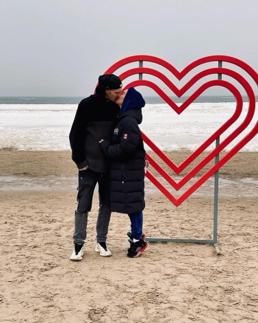 В своем Instagram певица публиковала фото, сделанное возле часов Лайма, а Янис сегодня поделился еще одним кадром - на нем парочка целуется на пляже в Майори на фоне сердца. И даже холод им нипочем!