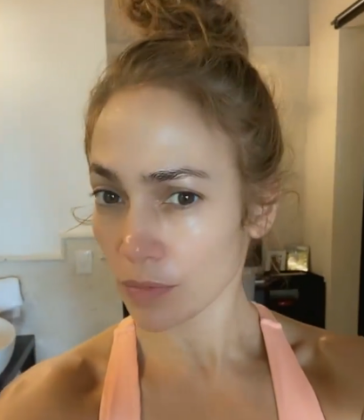 51-летняя Дженнифер Лопез опубликовала на своей странице в Instagram честное видео, в котором предстала в спортивном бра персикового цвета, с собранными в пучок волосами и без толики макияжа. Несмотря на отсутствие декоративной косметики на лице, поп-икона выглядит сногсшибательно — ни синевы под глазами, ни морщин, ни даже следов усталости. В подписи к ролику исполнительница призналась, что весь секрет кроется в использовании уходовых средств от ее именного бренда JLo Beauty.