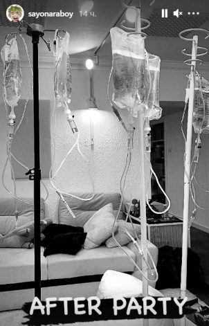 Муж блогера Насти Ивлеевой рэпер Элджей впервые вышел на связь в Instagram после грандиозного дня рождения своей жены. В Stories музыкант выложил фото, на котором изображены капельницы. Очевидно, рэпер хотел показать, как борется с похмельем.