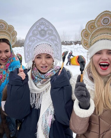 Звезды решили проводить праздник по-разному. Татьяна Навка с Глюкозой и подругами примерила русские народные костюмы и сожгла COVID-19. Огромное чучело из сухой травы ярко горело, пока организаторы мероприятия снимали шоу на камеру. К звездной компании присоединилась и солистка Little Big Софья Таюрская. Вся компания устроила гонки на санях.