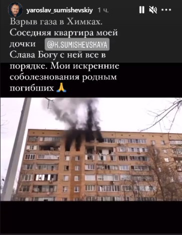 Утром в одном из жилых домов в Москве произошел взрыв газа. В результате пострадало несколько человек, также сообщается о смерти мужчины и ребенка. Позже выяснилось, что недалеко от происшествия находилась наследница Ярослава Сумишевского — Ксения. «Соседняя квартира моей дочки. Слава Богу, с ней все в порядке. Мои искренние соболезнования родным погибших», — написал артист в Stories.