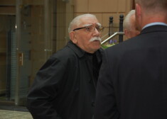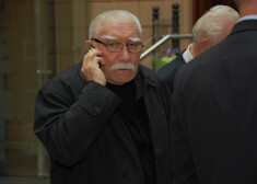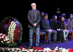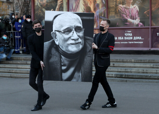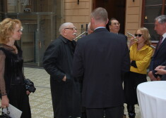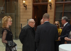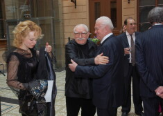 Армен Джигарханян и Виталина Цымбалюк-Романовская на открытии выставки в Риге в 2012 году