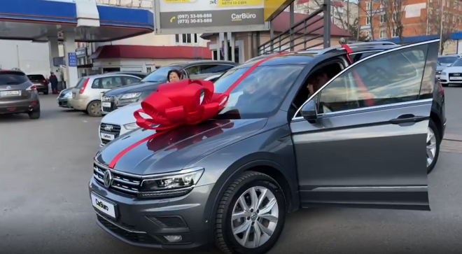 Ответ оказался неверным — семья приехала в автомобильный салон. Телеведущая решила презентовать своим родителям дорогую иномарку, Volkswagen Tiguan.
