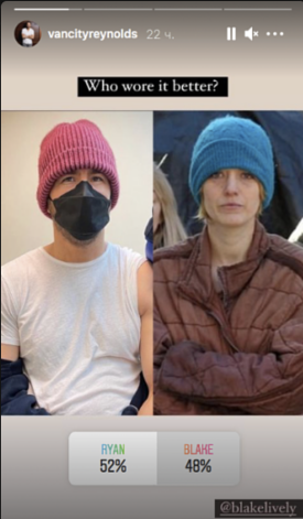 «Кому идет больше?» — подписал Рейнольдс коллаж из своего снимка и кадра из ленты «Ритм-секция», в котором Блейк сыграла главную роль. 33-летняя актриса не дала себя в обиду! Она опубликовала опрос супруга в своих сторис и оставила ему гневное послание: «Мой муж пытается меня затроллить, хотя сам выглядит как плод любви мема про Берни Сандерса и фильма «Водная жизнь». Удачи с этим».