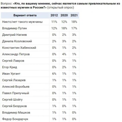 Интервьюеры утверждают, что президент страны сохраняют лидирующую позицию уже не первый год. За него проголосовали 18% опрошенных мужчин и 17% женщин.
