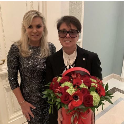 Знаменитый российский дизайнер Валентин Юдашкин ниже своей супруги Марины на 8 см. Разница в росте не мешает им уже 30 лет жить счастливо в браке. Причем, Валентин Абрамович гордится красотой своей жены и каждый раз, пользуясь случаем, хвастается ею.