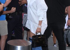 На кадрах, опубликованных Дженнифер, она появляется в купальнике Norma Kamali, лежа на песке в белой майке и джинсах, в топе, а также в стильных нарядах.
