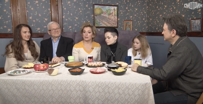 В съемках поучаствовали и самые младшие дети Порошиной - дочка Глафира, а также сын Андрей. Их операторы застали во время игры в соседней комнате. Андрей является любимчиком в семье. Старшие дети очень любят малыша.