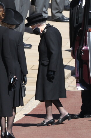 На похоронах принца Филиппа королева Елизавета II впервые появилась на публике после кончины своего супруга. Она практически всю церемонию провела в одиночестве, оставаясь в стороне от других членов семьи. Во время минуты молчания она стояла, низко склонив голову. На глаза королевы постоянно наворачивались слезы. Такой эмоциональной Елизавету II не видели очень давно. Для прощания с мужем королева надела брошь с жемчугом и бриллиантами, созданную Hunt and Roskell в 1893 году для ее бабушки, Марии Текской.