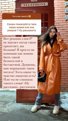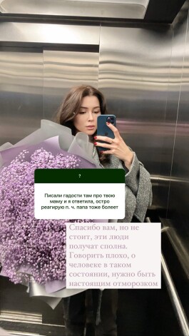«Писали гадости про твою маму. И я ответила. Остро реагирую, потому что мой папа тоже болеет», — заявила пользовательница. «Спасибо вам, но не стоит. Эти люди получат сполна. Говорить плохо о человеке в таком состоянии — это надо быть настоящим отморозком», - ответила Анна Заворотнюк.