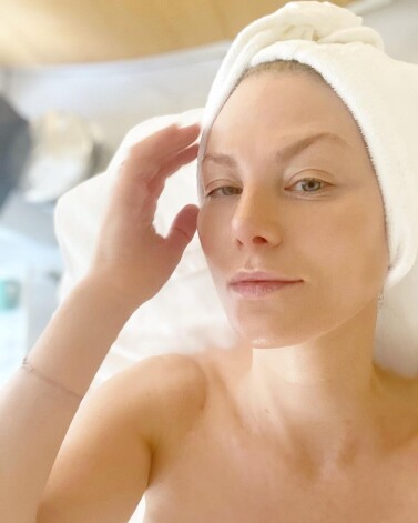 В Instagram Рената поделилась фотографией сделанной во время процедуры. На фото актриса позирует в сауне практически обнаженной – на ней надеты только шапка, варежки и специальный одноразовый бюстгальтер. Полупрозрачный материал лифчика подчеркнул красивую форму ее груди.