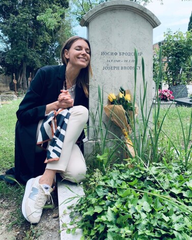 Знаменитость разместила в блоге серию фотографий со знаменитого погоста на острове Сан-Микеле. Толкалина принесла на могилу поэта букет желтых роз и письмо.