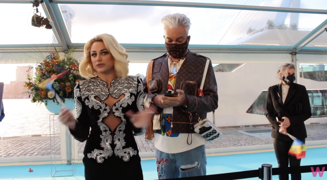 Российский исполнитель Филипп Киркоров появился на бирюзовой дорожке шоу Евровидение-2021 и смутил иностранных зрителей конкурса. Видео с интервью певца и представительницы Молдавии на конкурсе Натальи Гордиенко доступно на Youtube-канале блогера Уильяма Ли Адамса.