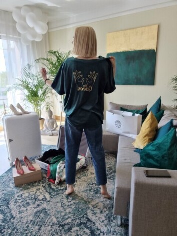 Саманта в зеленой рубашке с такой же надписью - The Queen. Такие рубашки были созданы специально для нее и ее команды. Саманта говорит, что оставшиеся уже успешно проданы - среди фанатов был большой интерес.