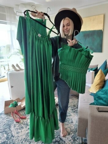 Но одна из многих других нарядов, которые есть у Саманты. "Сценические костюмы никому показывать нельзя. Это нужно держать в секрете до первой репетиции. Однако не секрет, что сценический костюм будет зеленого цвета", - подчеркивает Саманта Тина, говоря, что она позаботилась еще о семи восьми костюмах для "Евровидения", и это один из них. "Для каждого из них специально подобраны украшения, диадемы, серьги и другие аксессуары".