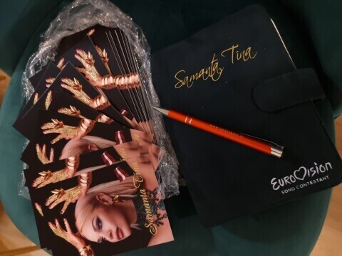 Эти открытки с латвийским флагом и надписью на обратной стороне - "Спасибо за вашу любовь!" - Саманта подготовила для болельщиков и фанатов. "Будет на чем автограф дать. А этот блокнот для меня особенный. Его мне подарила еще в начале года мой визажист Яна Козлова, которая тоже едет на "Евровидение" в моей команде. Блокнот покрыт темно-зеленым бархатом, золотыми буквами написано "Евровидение". Думала, как использовать его по-особенному, если уж мне его подарили таким особенным? И мне пришло в голову предложить всем - близким и дорогим мне людям, которые так важны для меня на этом этапе подготовки к "Евровидению", всей моей команде - написать свои пожелания. Теперь для меня это словно реликвия, которую я беру с собой, чтобы читать и запоминать эти пожелания. Это действительно искреннее чувство".