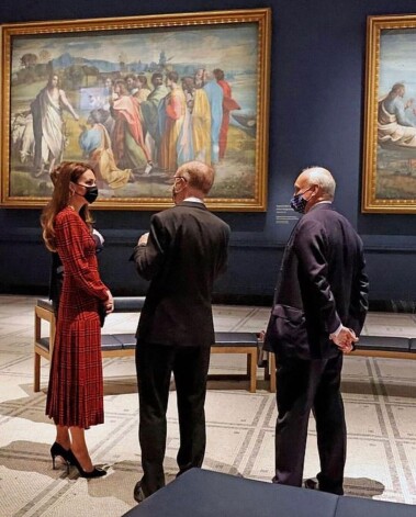 «Думаю, люди жаждали красоты и вдохновения. Это прекрасное время для посещения музеев и галерей, потому что они не забиты туристами. Я очень рада быть сегодня здесь, так как нам трижды пришлось отменять встречи из-за Covid», — отметила супруга принца Уильяма во время встречи.