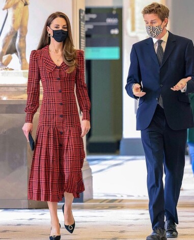 Сегодня 39-летняя герцогиня Кембриджская посетила лондонский музей Виктории и Альберта, открывший свои двери для посетителей после полугодового карантина. Для сольного выхода в свет Кейт Миддлтон выбрала красное платье от любимого дизайнера Alessandra Rich стоимостью 1,5 тысячи фунтов стерлингов.