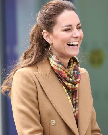 Для нового выхода в свет 39-летняя Кейт выбрала любимое пальто от Massimo Dutti, которое дополнила коричневым клатчем и шарфом в шотландскую клетку, названной в честь Стратерна.