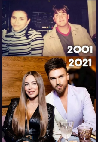 Первый снимок был сделан в далеком 2001 году. Каролина запечатлена с хвостом и в свитере, а рядом с ней сидит розовощекий Александр с длинной челкой и приподнятыми вверх бровями. Второй снимок, напротив, свежий. Певцы встретились на препати «ЖАРЫ Music Awards» и не упустили возможности сделать совместный кадр.