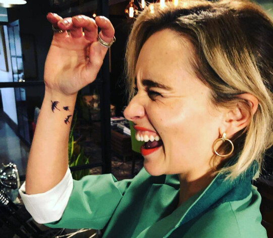 После восьми сезонов съёмок в "Игре престолов" Эмилия Кларк отдала дань уважения своей героине Матери драконов Дейенерис Бурерождённой и набила на запястье трёх маленьких драконов.