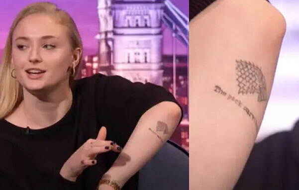 Софи Тёрнер также сделала тату, когда съёмки "Игры престолов" закончились. Теперь на руке актрисы красуется герб Старков с надписью "Стая выживает". Когда девушка впервые появилась на публике с тату, многие фанаты сериала рассмотрели её как пасхалку и даже строили теории, как будут развиваться действия в ещё не вышедшем на тот момент восьмом сезоне сериала.