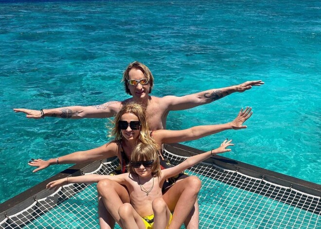 Яна Рудковская и Евгений Плющенко с сыном на Мальдивах в апреле 2021 года
