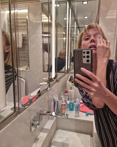 «Макияж я делаю регулярно и чаще всего профессиональный, так как каждый день возникает такая необходимость по работе. Очень важно, чтобы всю эту красоту вечером можно было легко смыть, поэтому всегда ищу средства для снятия макияжа, которые легко и быстро удаляют тушь и стойкий карандаш. Мой вечерний ритуал: сначала удаляю макияж с глаз, потом умываюсь специальным муссом, очищающим все лицо, потом протираю его тоником, затем наношу сыворотку, а уже после всего крем вокруг глаз и ночной крем. Утренний ритуал почти такой же, за исключением средств для снятия макияжа и использования ночного крема», – поделилась секретами красоты певица.