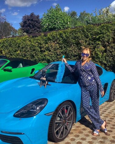 На кадрах этого ролика продюсер предстала в дорогой шелковой пижаме модного дома Louis Vuitton и солнечных очках. Вооружившись пушистой щеткой, она смахивала пыль со своих многочисленных элитных автомобилей, элегантно переходя от одной машины к другой. "Поможем выбрать мне машину для завтрашней премии из нашего авто -парка ? Голосуем!!: Porsche 718 Cayman S, Porsche 911 Turbo Cabriolet, Porsche Panamera GTS, Porsche Cayenne" - написала звезда.