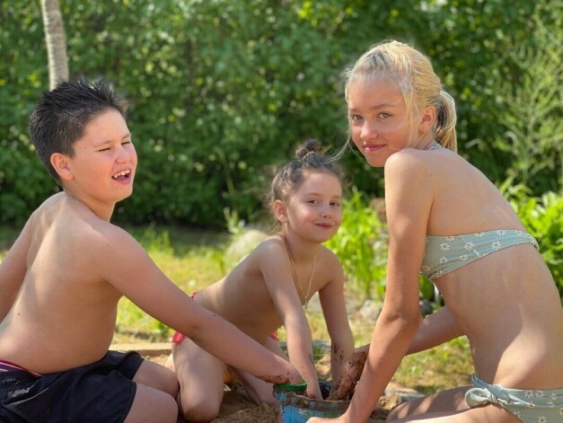 Агата Муцениеце с детьми на Мальдивах в декабре 2020 года