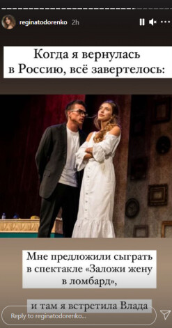 В одной из командировок Регина Тодоренко загадала заветное желание - непременно встретить своего любимого человека. А когда она вернулась в Москву, ей предложили работу в театре, в спектакле "Заложи жену в ломбард". И именно там Регина встретила Влада.