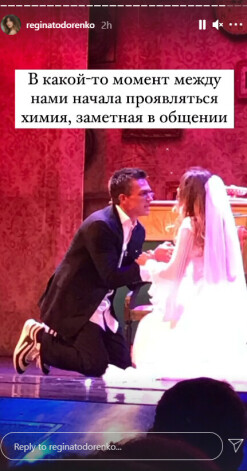 "Мы познакомились на репетициях. Я играла роль жены, а он - мужа", - поделилась Регина Тодоренко. Но тогда она еще не подозревала, что сможет влюбиться в партнера по сцене, тем более, что он показался ей несимпатичным как человек.