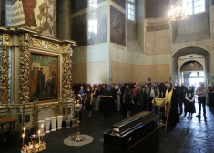 Прощание с Петром Мамоновым прошло в главном соборе Донского монастыря. Там же состоялось отпевание. Проводить музыканта в последний путь пришли его родные, друзья, коллеги. Среди присутствующих был замечен и режиссер Павел Лунгин - лидер группы "Звуки Му" сыграл главную роль в его фильме "Остров".