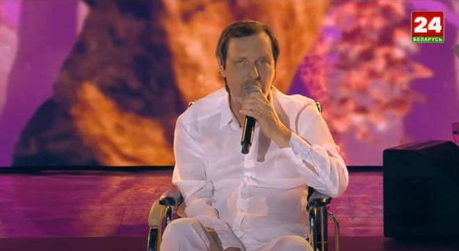 На сцене шеститысячного амфитеатра в Витебске певец появился уже глубокой ночью: его выступление стало завершающим аккордом "Славянского базара". Свои прошлые концерты Николай Носков отыгрывал, сидя на стуле, и порой даже вставал на ноги, опираясь на трость. Однако на этот раз Носкова вывезли к публике на инвалидной коляске: чтобы поднять ее на сцену, потребовалась помощь четырех человек. А вот встать артист так и не смог: два своих хита - "На меньшее я не согласен" и "Это здорово" он исполнял сидя, притопывая в такт левой ногой.