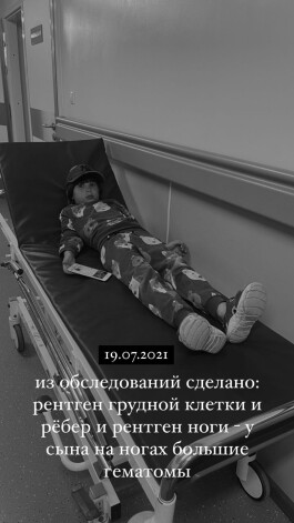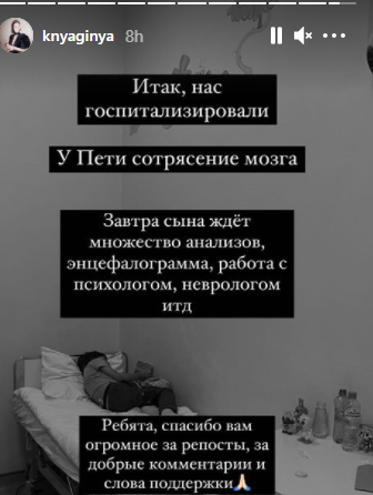В результате сын певца получил закрытую черепно-мозговую травму, множественные ушибы и сотрясение мозга. Сейчас мальчик находится под наблюдением врачей. У маленького пациента наблюдается тошнота и головокружение.