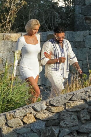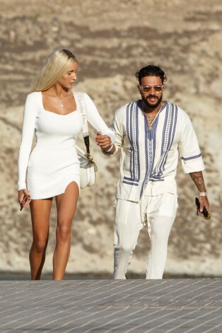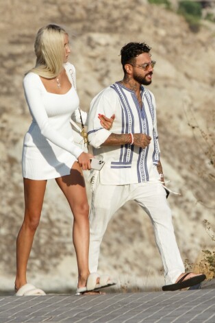 Вчера фотографы подловили Тимати и Сашу во время вечерней прогулки по уютным улочкам греческого остров Миконос. Пара вышла на променад во всем белом: на Дони было короткое трикотажное платье, а на Тимати — легкие брюки и рубашка с вышивкой. Влюбленные шли под руку и что-то увлеченно обсуждали.